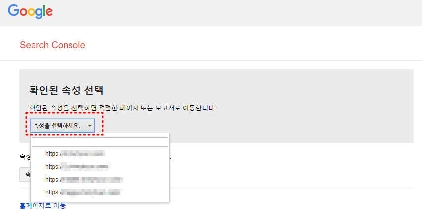 아래와 같이 확인된 속성이 뜨고 "속성을 선택하세요"에서 해당 블로그 주소를 클릭해 줍니다.