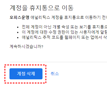 구글 애널리틱스에서 계정을 삭제할 경우 애널리틱스에서 그간 수집한 자료는 모두 삭제됩니다.
