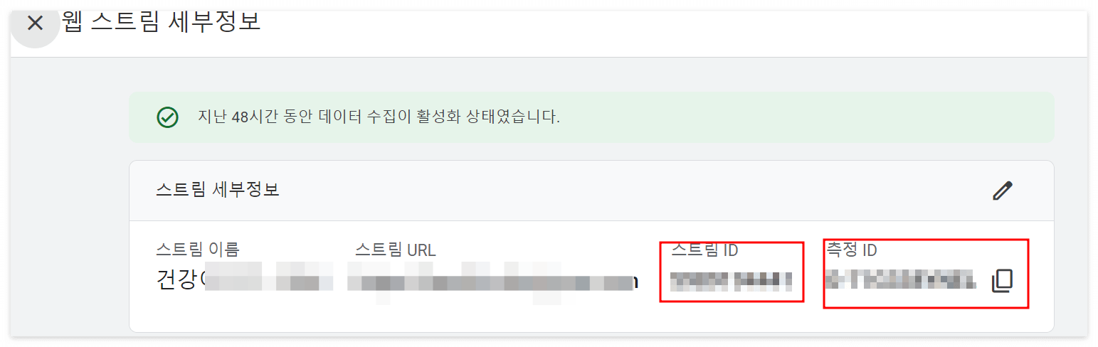 측정 ID와 스트림 ID 등 정보가 뜨네요.