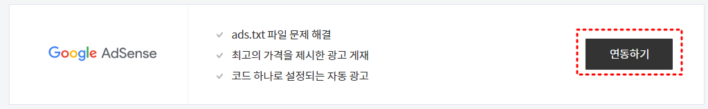 수익을 클릭하면 아래와 같이 구글 애드센스 창이보이고 이곳에서 연동하기를 클릭해 줍니다.