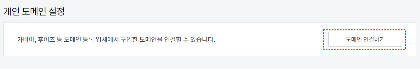 하단 개인도메인 설정으로 이동하여 도메인 연결하기를 클릭합니다.
