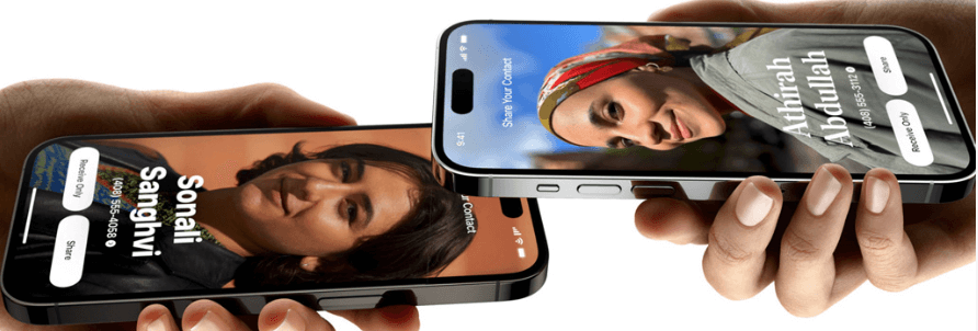 iPhone를 상대방 iPhone 및 Apple Watch와 가까이만 하여도 서로가 공유코자 하는 전화번호나 이메일, 다양한 정보 등을 선택적으로 전송할 수 있으며 연락처 포스터도 같이 공유할 수 있습니다.