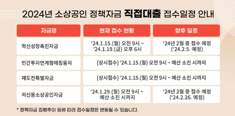 저신용 소상공인 정책자금 신청은 2024년 1월 29일 오전 9시부터 소상공인 누리집을 통해 신청가능합니다.