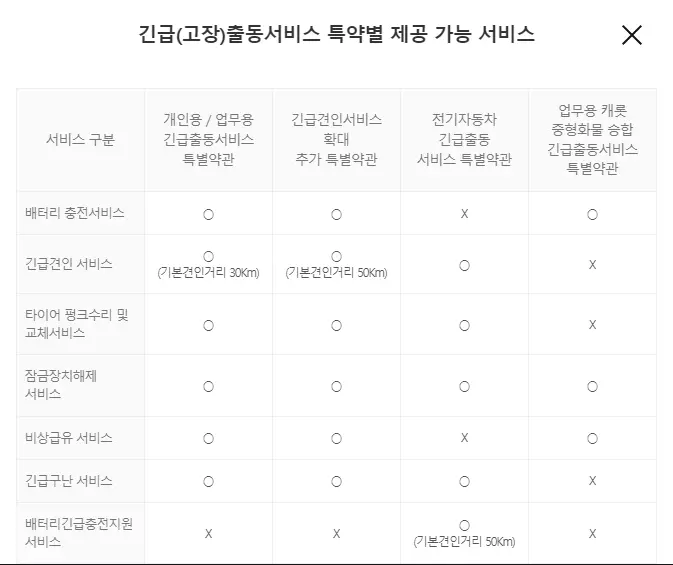 다이렉트 자동차 보험 긴급출동 서비스 비교