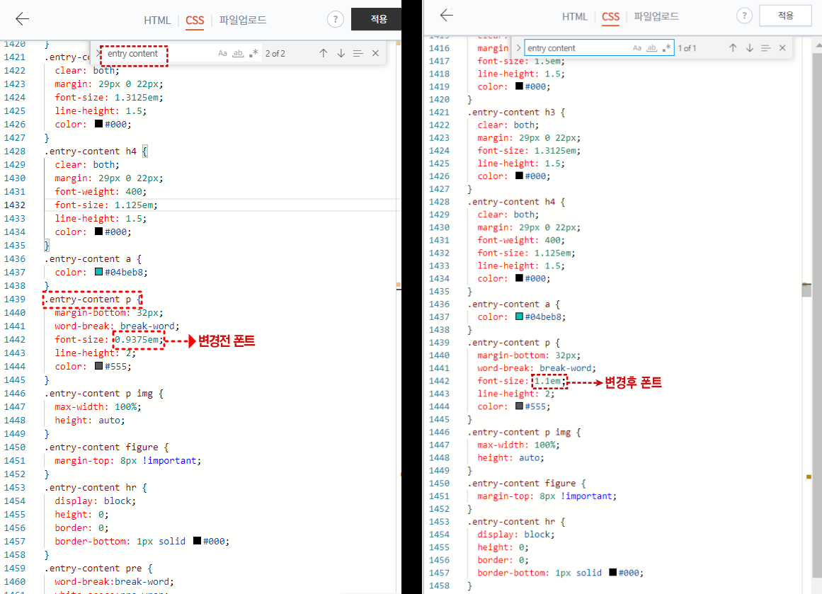 글씨의 크기를 변경하기 위해 해야 하는 작업은 css변경만으로 간단하게 가독성 높은 글을 만들 수 있습니다.