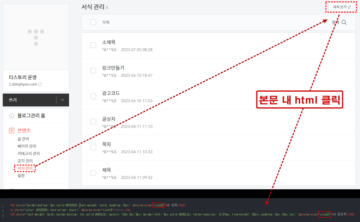 티스토리는 크게 글제목, 본문 내 큰 제목, 소제목, 본문 이렇게 세 가지로 나눌 수 있습니다.