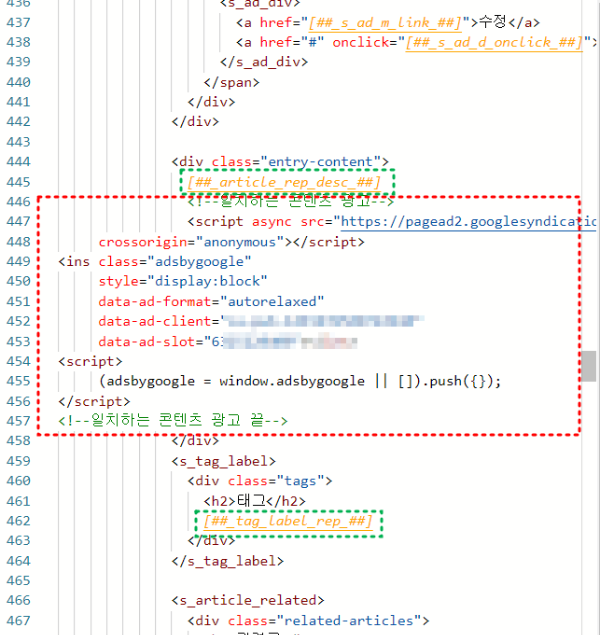 광고코드 만들기가 완료되면 아래와 같이 멀티광고가 가능한 코드가 생성됩니다.