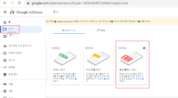 멀티플렉스 광고 송출을 하기 위해 애드센스에 접속 후 멀티플렉스용 광고코드를 생성해야 합니다.