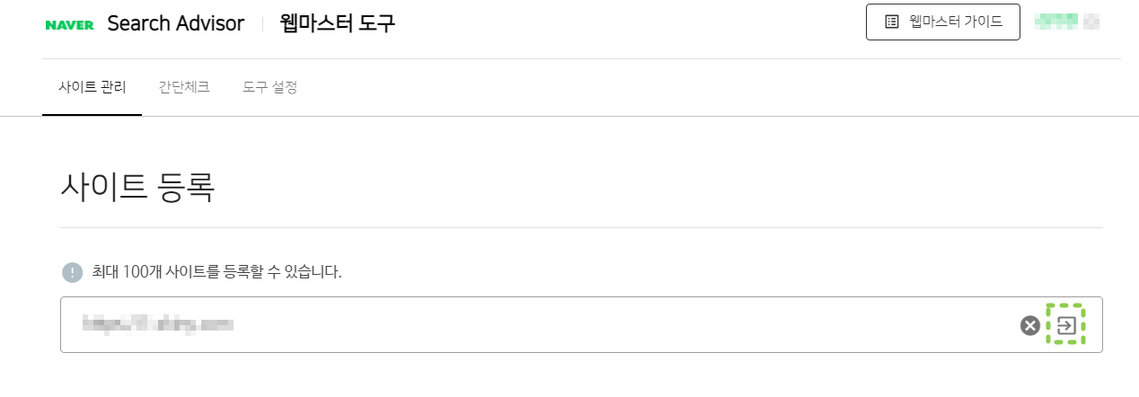 등록된 사이트 클릭 후 이동화면이 다음과 같이 표현됩니다.