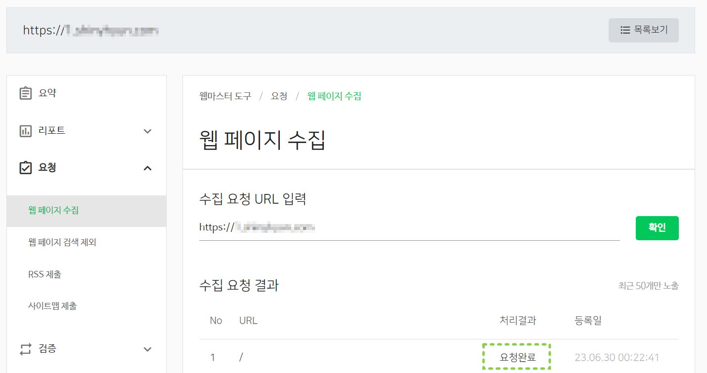 이 역시 티스토리를 수집하는 도구로써 반드시 수집요청진행을 해주어야 합니다.