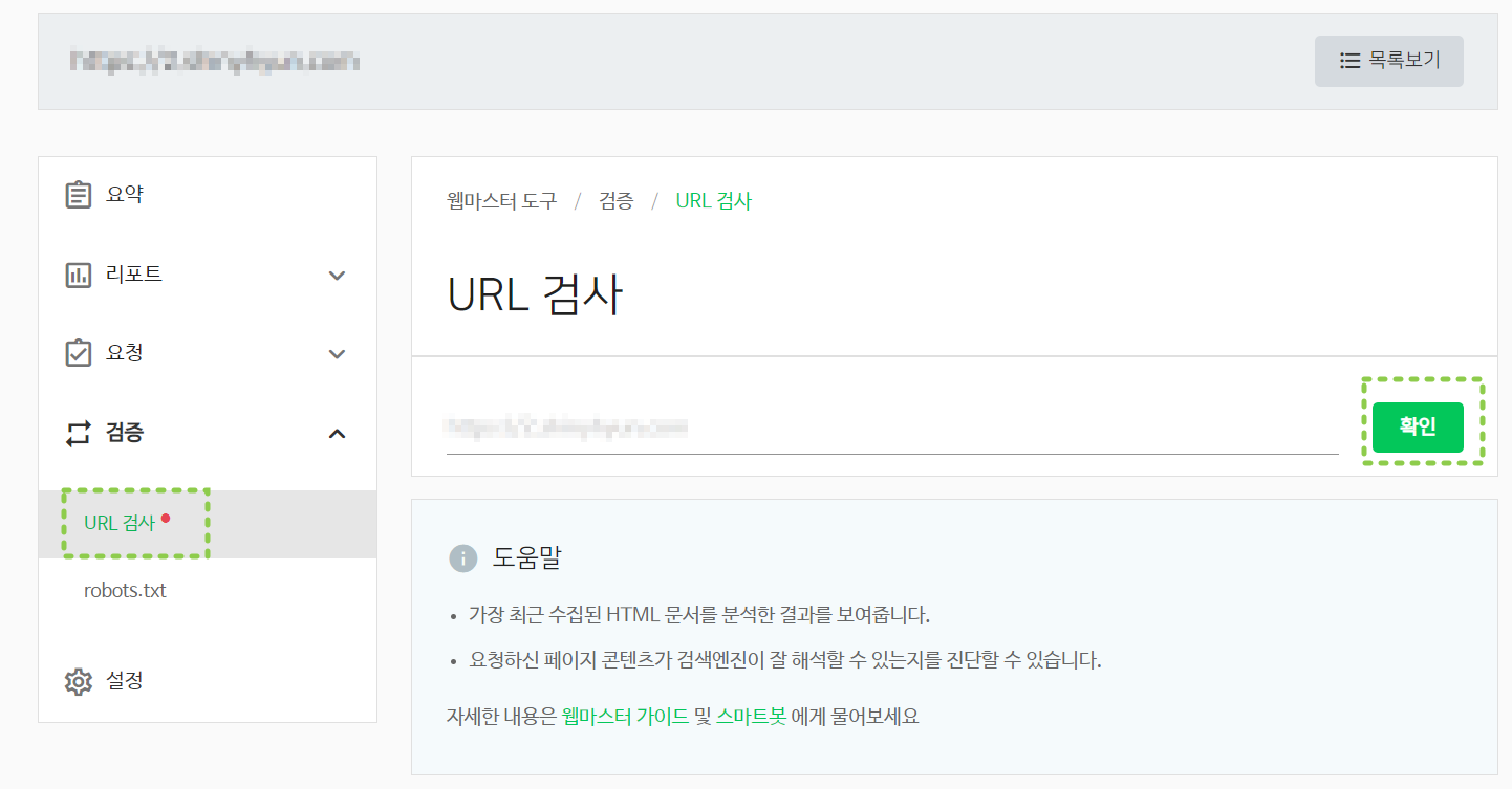 이때는 네이버 서치어드바이저를 통해 URL검사를 시행합니다.