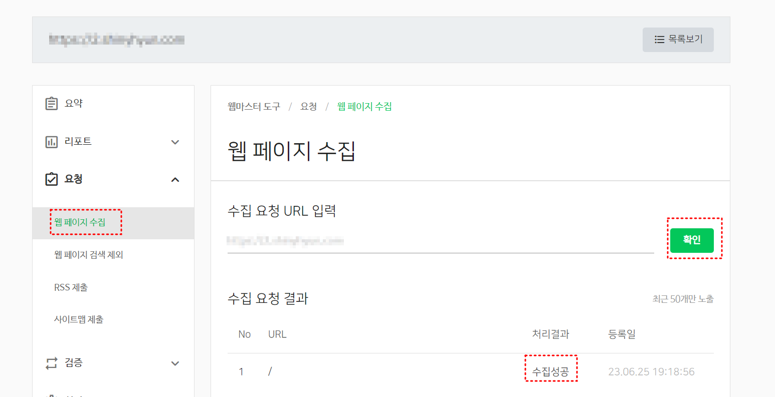네이버 웹페이지 수집요청하기