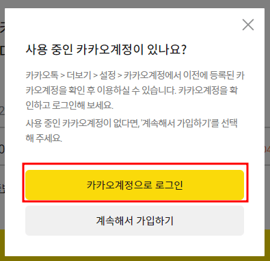 카카오 계정이 있나요"에서 카카오 계정으로 로그인을 클릭해 줍니다.