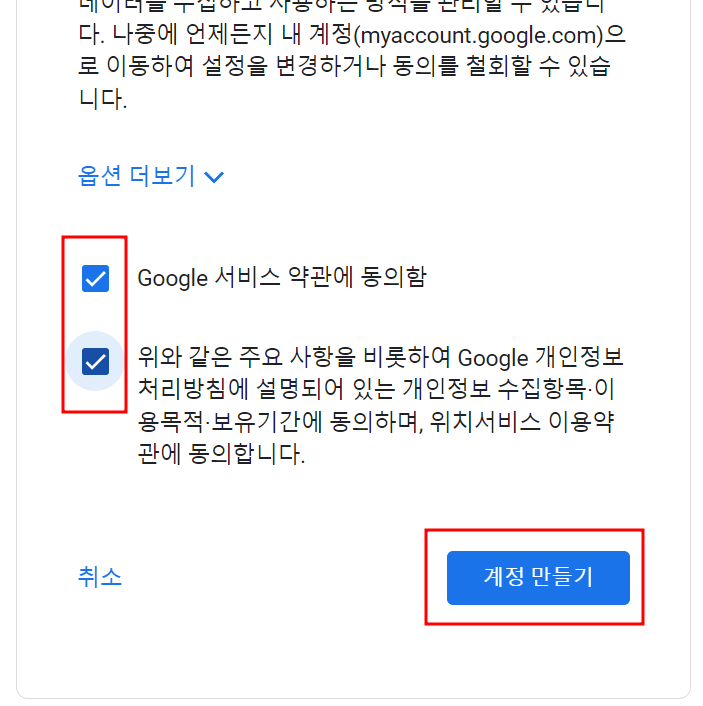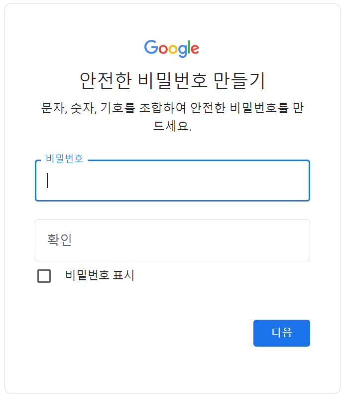 계정 만들기 버튼을 클릭하면 구글의 새로운 계정이 생성됩니다.