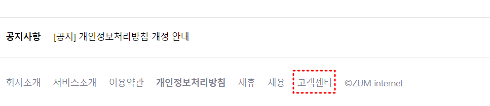 줌등록을 하기 위해 줌 사이트로 입장 후 메인페이지 최하단으로 드래그하면 고객센터가 있습니다.