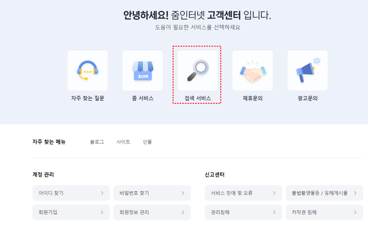 검색서비스를 선택하면 다음과 같은 페이지로 이동합니다.