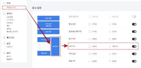 사이드바 광고설정 1 - 관리페이지 광고설정