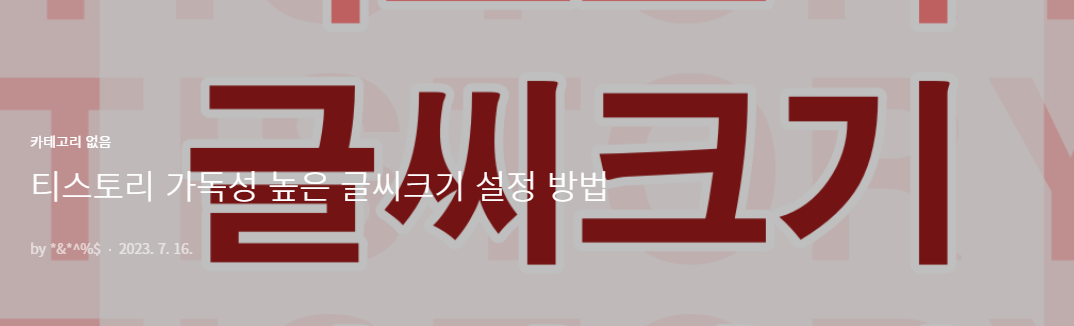 | 티스토리 가독성 높은 글씨크기 설정 방법 (0) | 2023.07.16 |
