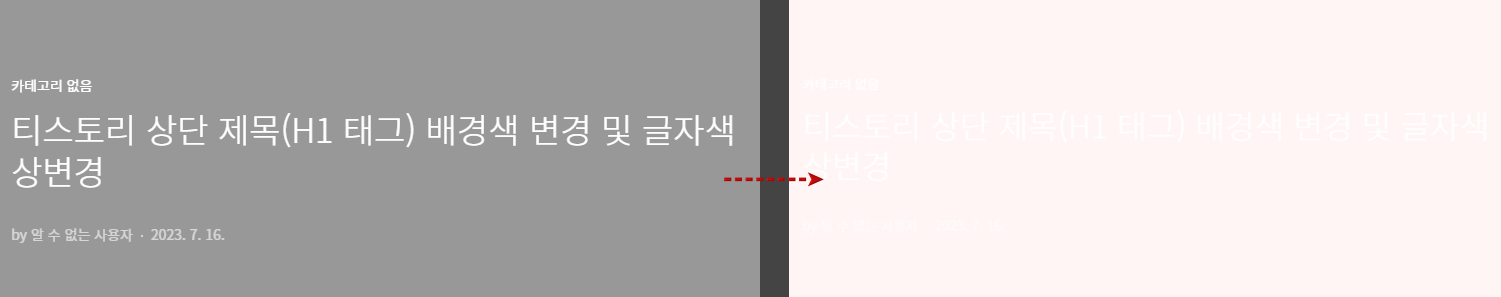 오늘은 티스토리에서 상단 제목인 H1태그의 배경 및 글자색상의 변경을 진행해 보았습니다.