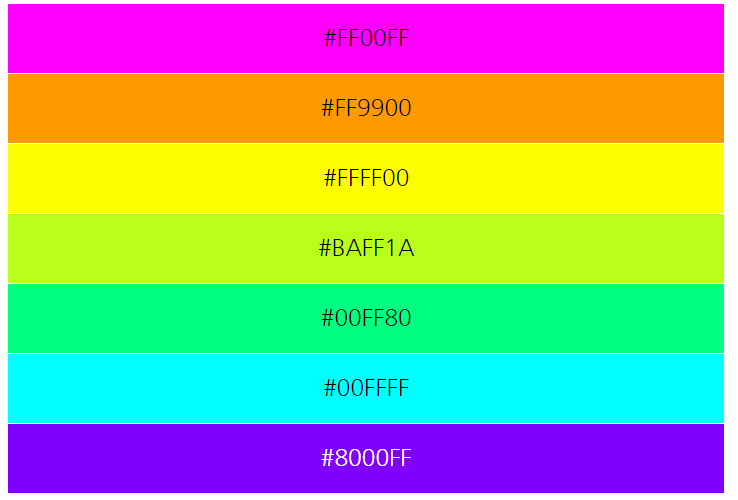 대표적으로 쓰이는 형관펜색깔은 아래와 같습니다. 맘에 드는 걸로 선택하여 해당 부분수치를 수정해 주시면 됩니다.