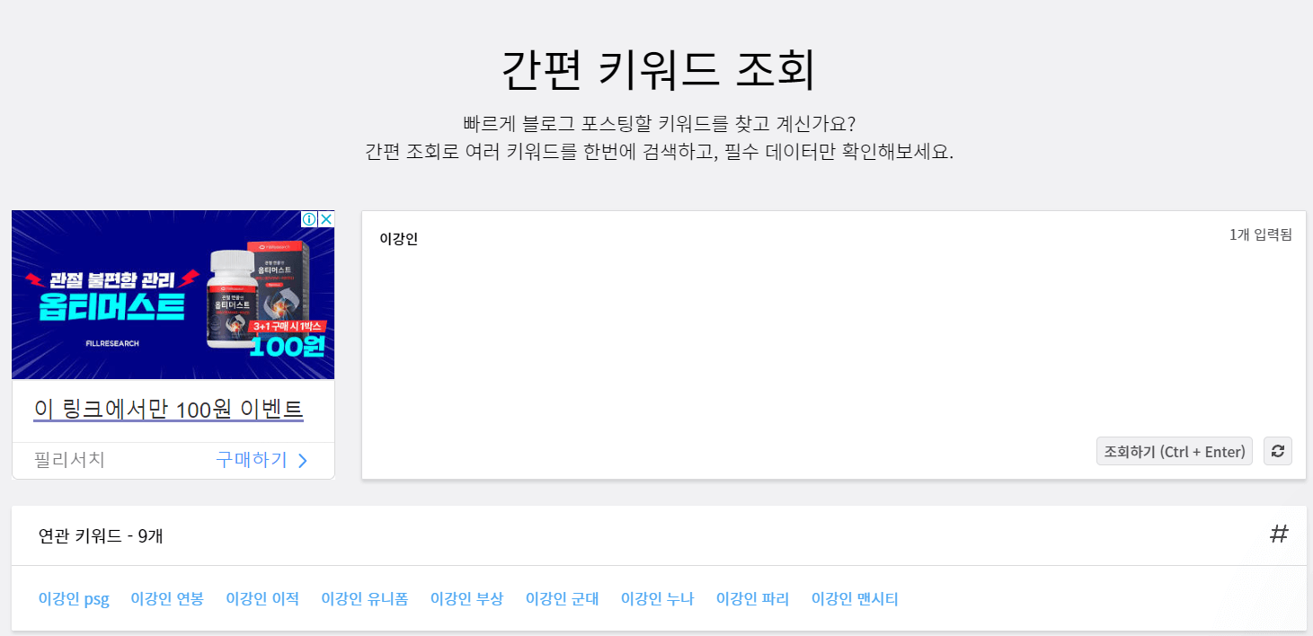 검색량이 조금 아쉽긴 한데 그래도 이강인에 대해 글을 포스팅한다면 이강인 PRG가 가장 경쟁력이 높네요.