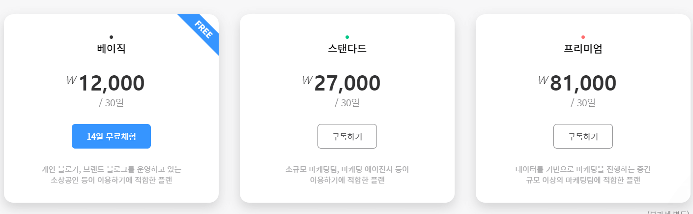 아래의 화면은 유료 결제 시 지불 금액입니다. 초보블로거에게는 매우 부담스러운 가격입니다.