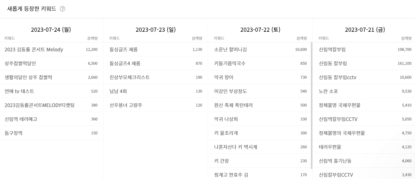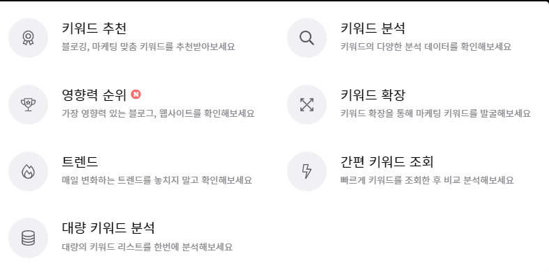 각각 체크해 보고 이용해 보셔도 좋겠지만 전 개인적으로 간편 키워드 조회와 영향력순위, 인기 급상승키워드를 주로 사용합니다.