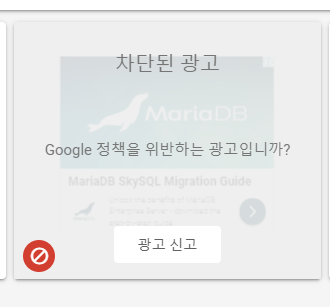 위의 이미지와 같이 나사모양을 클릭하면 아래의 이미지처럼 "차단된 광고"라는 글로 차단처리 되었음을 알 수 있습니다.