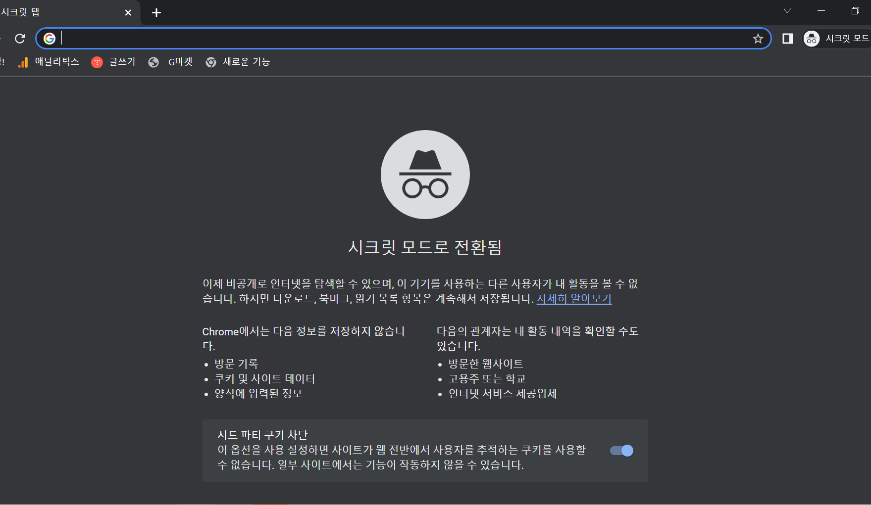새시크릿창을 클릭해 주면 바로 시크릿 모드로 입장하게 됩니다.