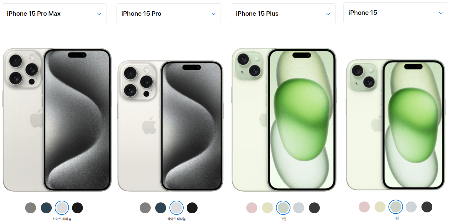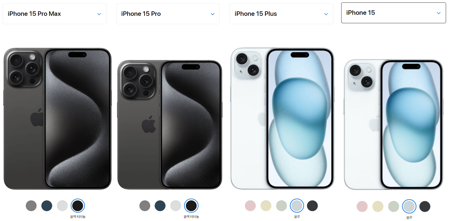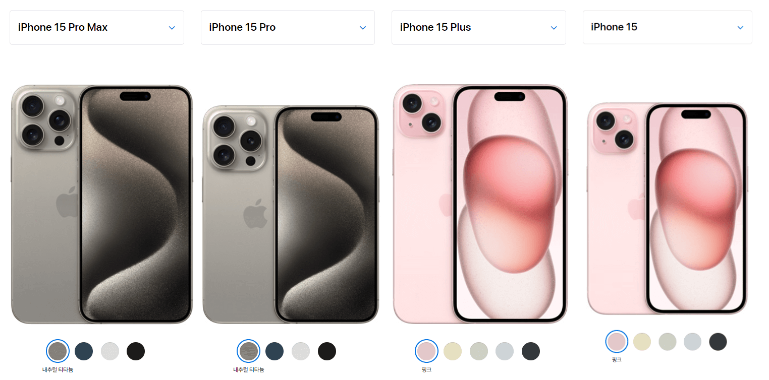 | 구 분 | iPhone 15 | iPhone 15 Plus | iPhone 15 Pro | iPhone 15 Pro Max |